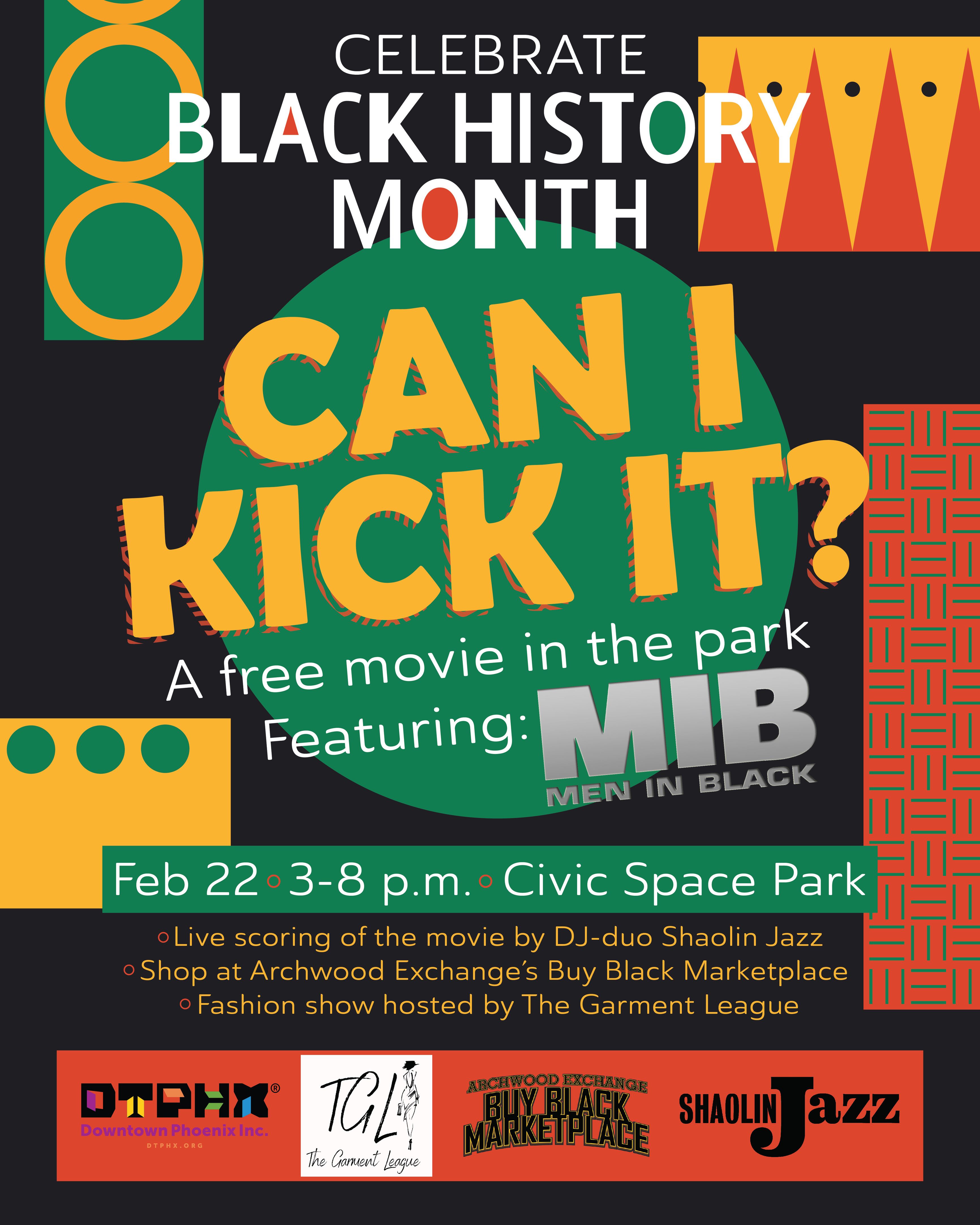 Roll out your park blanket and join us for a screening of the movie Men in Black (1997) with live scoring from DJ Duo Shaolin Jazz, shopping from Buy Black Marketplace by Archwood Exchange, and a fashion show hosted by The Garment League.